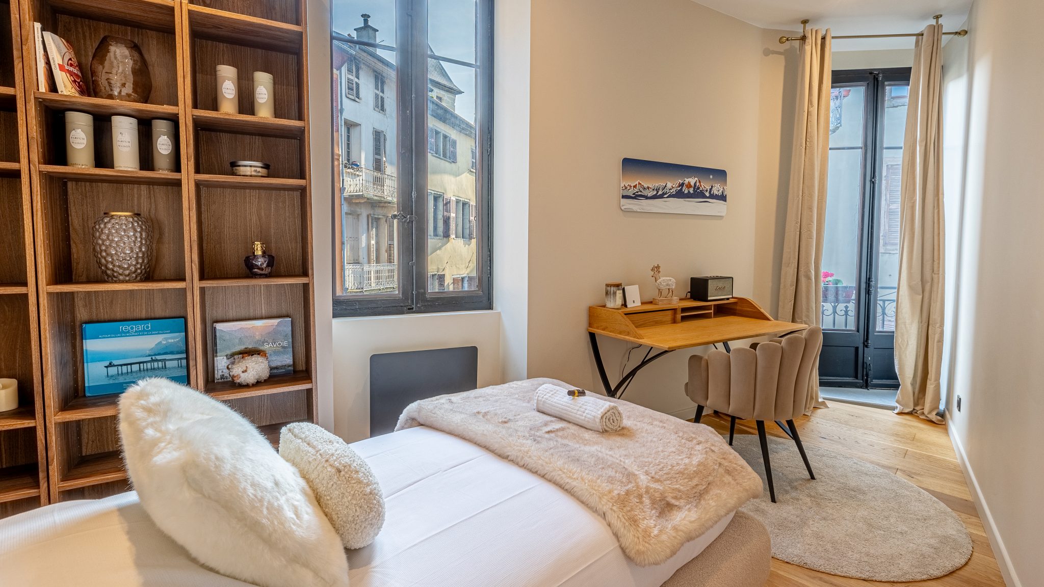 Bienvenue à L'Écrin Alpin, un appartement d'exception situé au cœur de Chambéry, place Saint-Léger. Niché dans un élégant immeuble en pierre du XIXe siècle, cet espace de vie unique vous offre un séjour raffiné entre tradition et modernité. Conçu pour les voyageurs exigeants, L'Écrin Alpin combine confort, esthétique et localisation idéale. Laissez-vous séduire par ce lieu où chaque détail a été pensé pour vous offrir une expérience inoubliable.